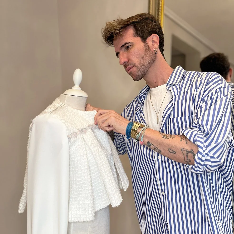 Mientras tanto, compagina esta labor con la de diseñador de tocados para la firma Mimoki.